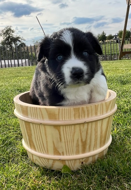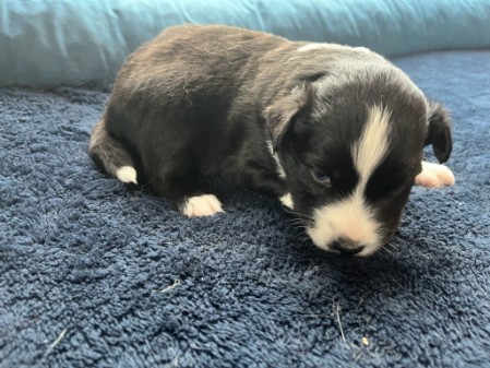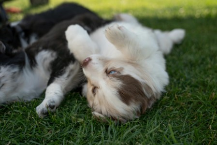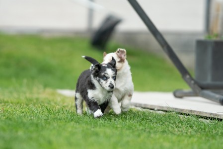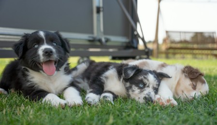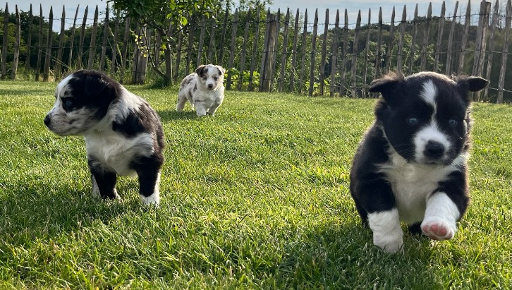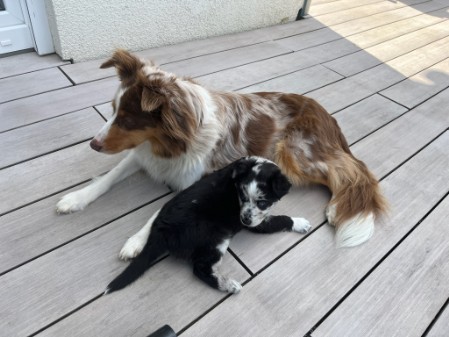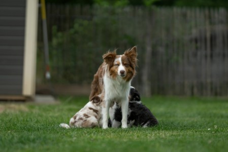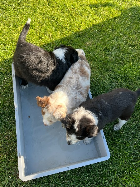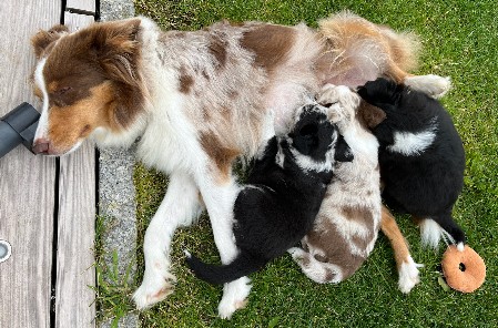 Hollys erste Welpen Die drei Damen aus dem ersten Wurf waren so unendlich süß! Holly hat sich rührend um sie gekümmert. Und auch wir haben unseren Teil dazu beigetragen, dass aus den kleinen Würmchen gut sozialisierte Welpen wurden. Die drei waren nahezu stubenrein, als sie zu ihren neuen Besitzern kamen. Zudem beherrschten sie bereits einfache Befehle. In den acht Wochen bei uns lernten sie viele Umgebungen kennen wie Wald, Wiesen und Felder, steinige Untergründe und fließendes Wasser. Sie spielten mit unseren Katzen und auch mit den Kindern. So konnten sie schon viel Erfahrung sammeln und hatten vor nichts Angst. Die neuen Besitzer berichten einstimmig, dass die drei easy zu erziehen und super Familienhunde sind.
